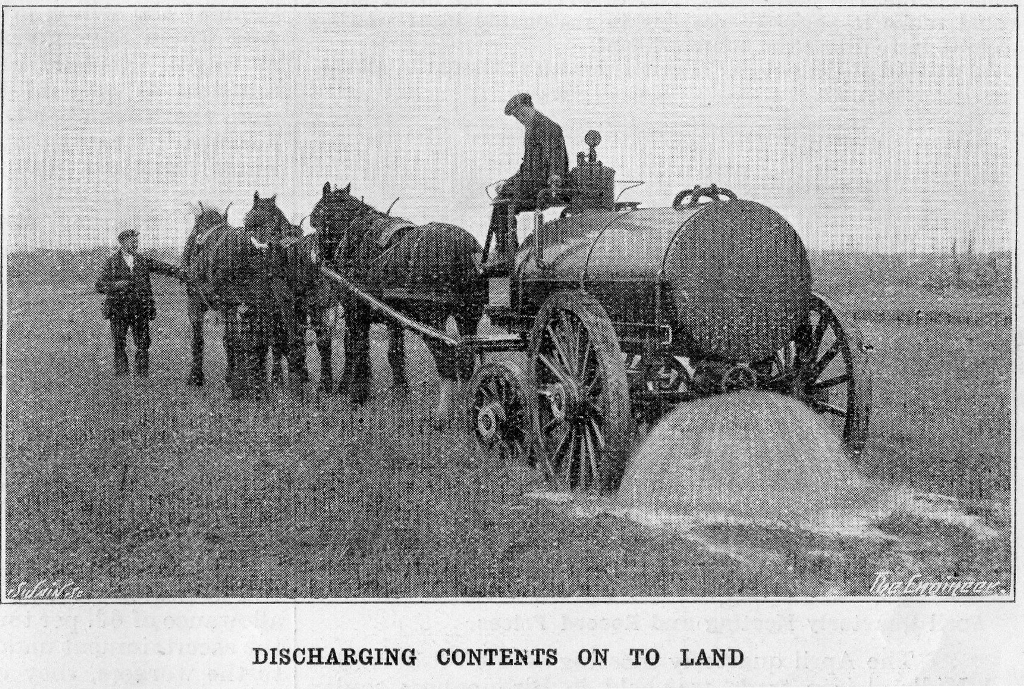 Sewage was pumped out of cesspools and the contents sprayed on fields.